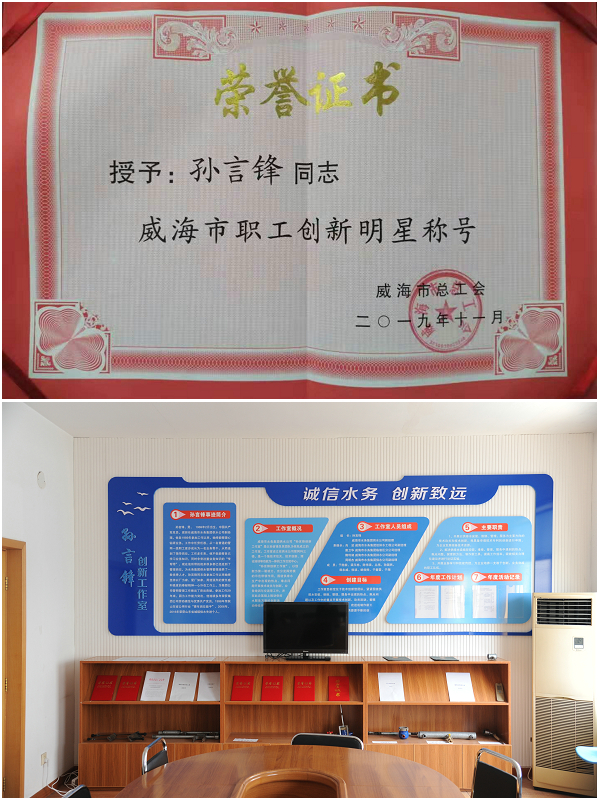 市水務(wù)集團(tuán)孫言鋒同志榮獲“威海市職工創(chuàng)新明星”榮譽(yù)稱號